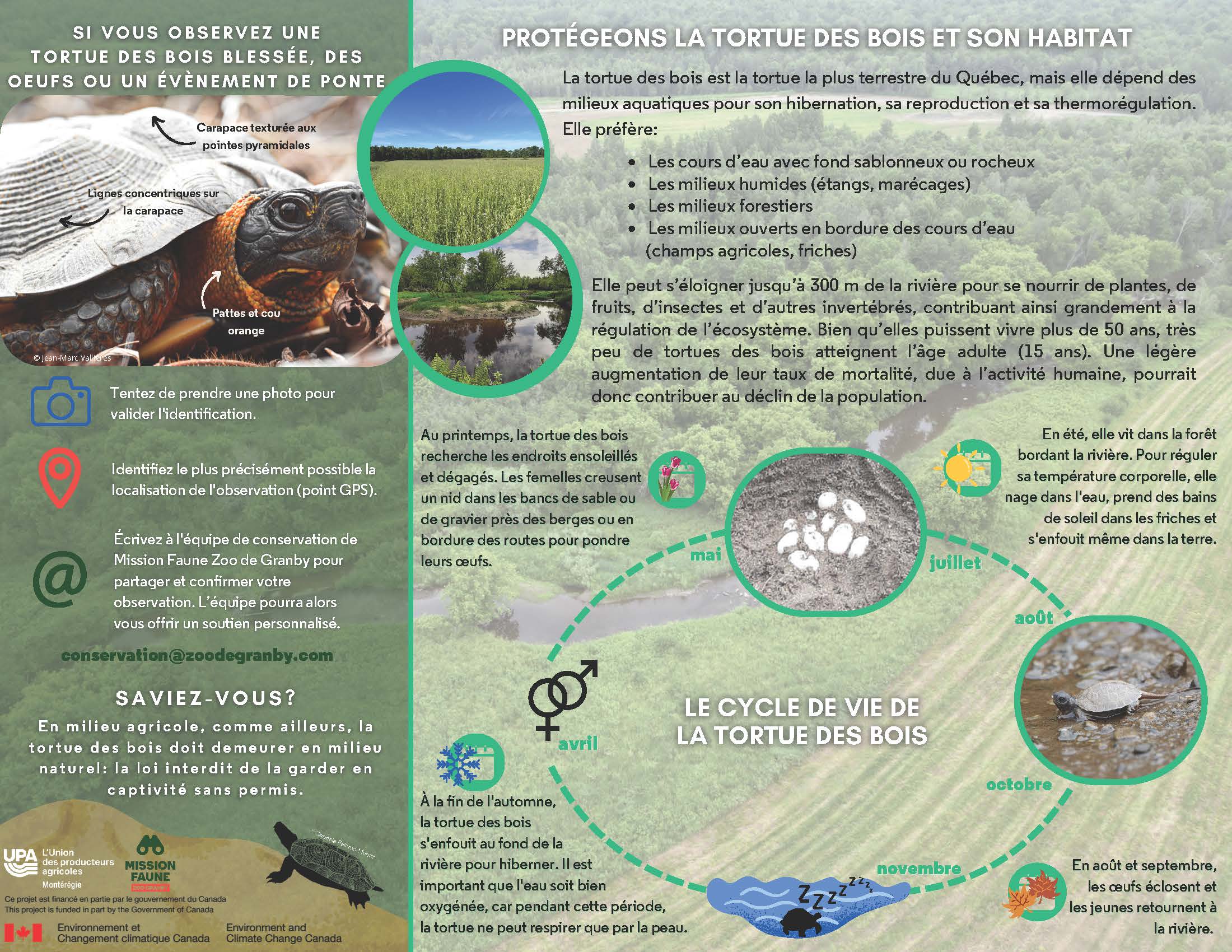 Consultez ce guide  (9 Mo) pour découvrir des pratiques durables visant la conservation et le maintien de l’habitat de la tortue des bois en milieu agricole.