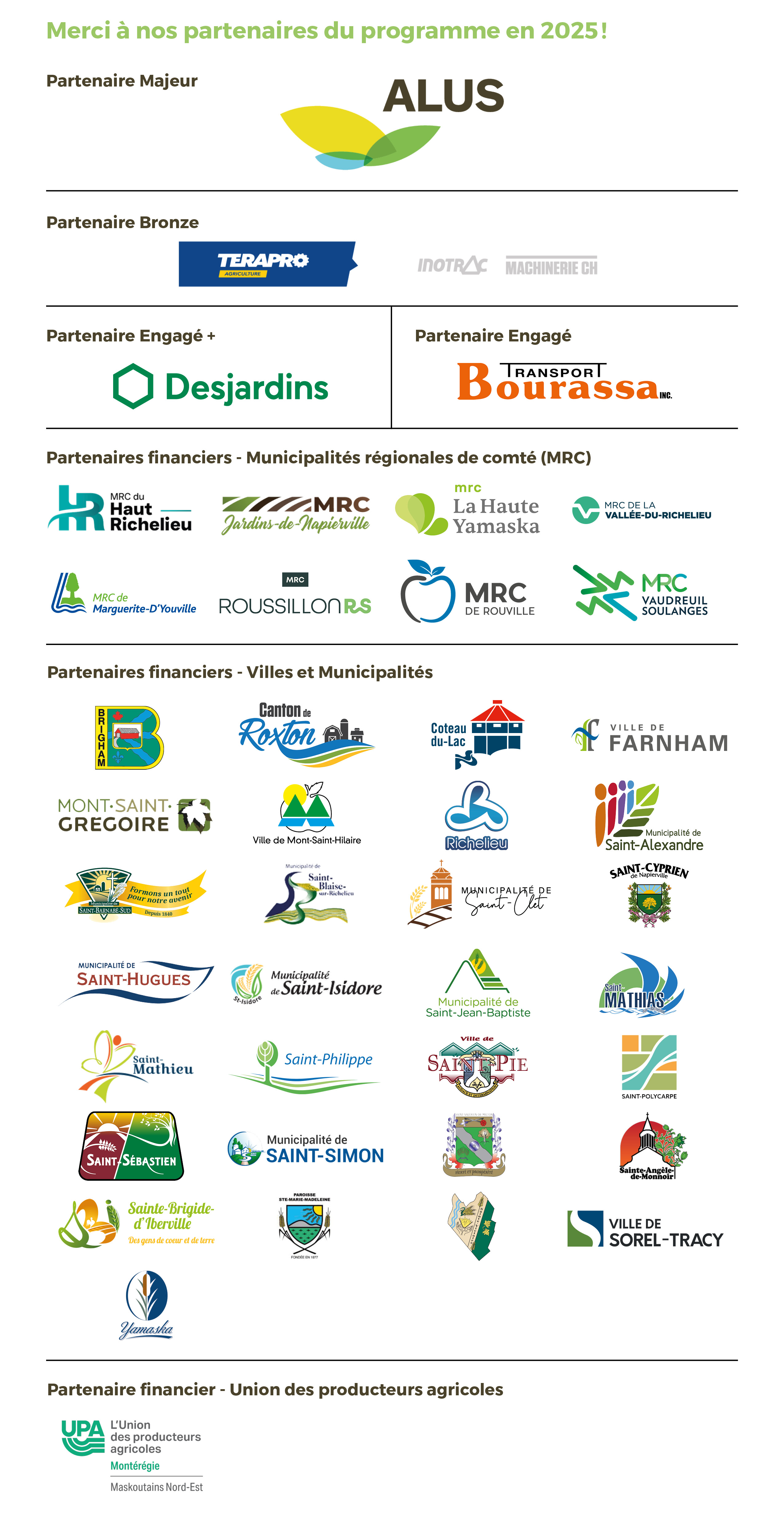 Ce projet est rendu possible grâce à l'accompagnement et au soutien financier de la Stratégie bioalimentaire Montérégie.